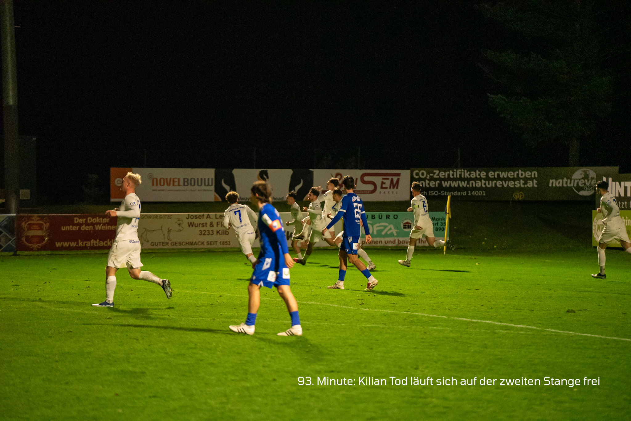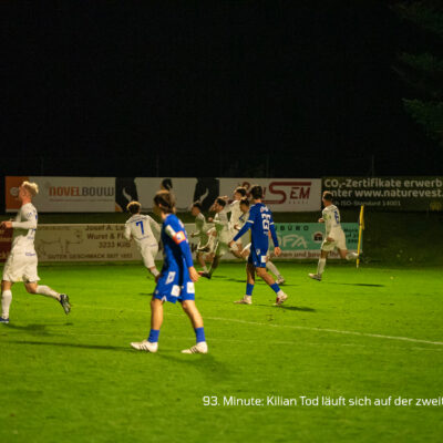 In der 93. Minute wird Simon Staudinger nach einem schnellen Gegenangriff auf der rechten Seite kurz nach der Mittellinie von den Beinen geholt. David Sauer bringt den Freistoß hoch in den Strafraum – dort löst sich Kilian Tod auf der zweiten Stange geschickt von seinem Gegenspieler, steht genau richtig und verwandelt die Flanke souverän zum 1:1!