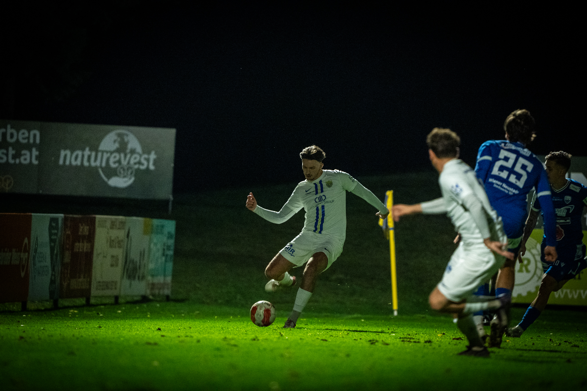 Gegen den Drittplatzierten aus Wiener Neustadt erwartete unsere KübaBuam ein starker Gegner. Das zeigte sich auch früh im Spiel: Viel Ballbesitz war in der ersten Halbzeit nicht auf unserer Seite. Dafür stand unsere Mannschaft defensiv sehr stabil und setzte über Umschaltmomente einige gefährliche Nadelstiche – allerdings, so die Worte von Safak Özkan, „nicht zwingend genug“. So ging es torlos in die Pause.